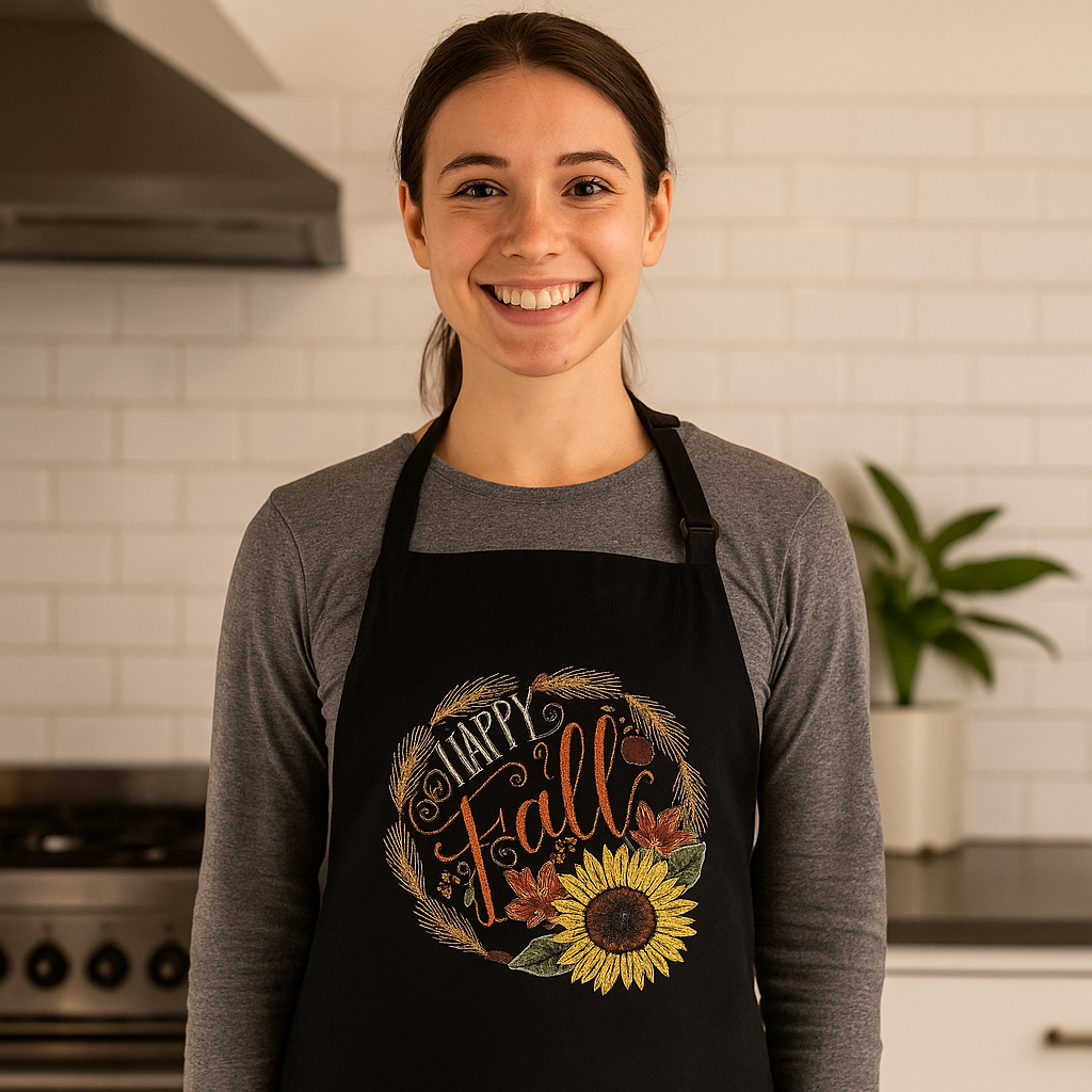 Este delantal bordado de la colección Pumpkin Kisses combina elegancia y funcionalidad, confeccionado con hilos Madeira de alta calidad y elaborado en máquinas Melco para un acabado impecable. Personalizable según tus preferencias, es ideal para quienes buscan un toque distintivo y sofisticado en su cocina o espacio creativo. Su diseño único añade un detalle artístico y exclusivo que realza cualquier ambiente.