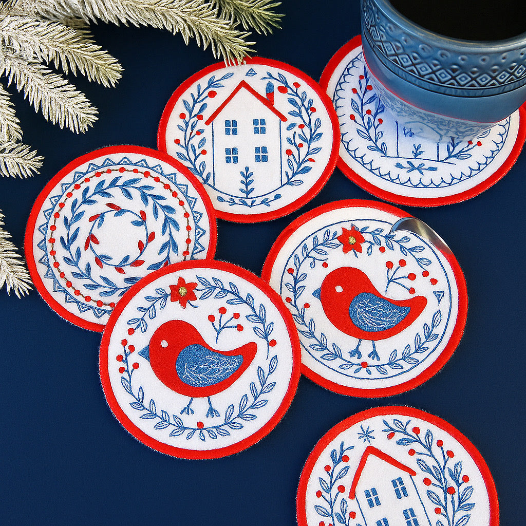 Este set de 3 portavasos redondos combina la elegancia del acolchado con la delicadeza del bordado artesanal, elaborado con hilos Madeira y máquinas Melco de alta precisión. Con medidas de 5 x 5 cm, estos portavasos no solo protegen tus superficies, sino que también permiten personalizar los colores según tu estilo, aportando un toque sofisticado y único a cualquier ambiente. Ideal para quienes valoran la calidad y el diseño exclusivo.